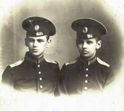 Misha and and his brother Iura at the Sumskoy Cadet School, around 1915. Yiuriy, on the right, was the younger of the two brothers. Misha was last seen in 1920 - after the evacuation of the White Russian Army