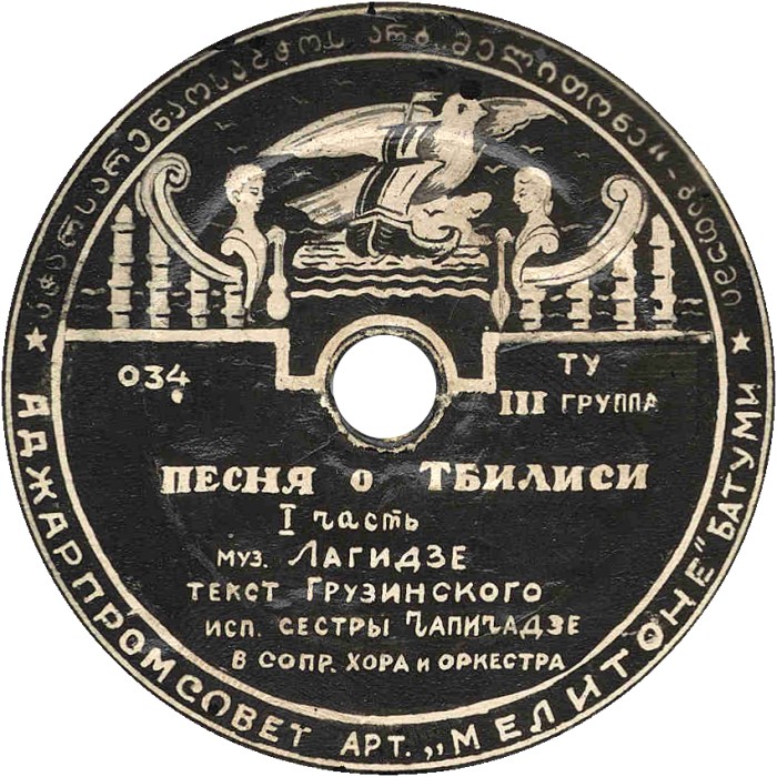 | 034 | | | Сёстры Нази Чапичадзе и Натела Чапичадзе, акк. хор и симфонический оркестр, дирижёр Джемал Иванович Гокиели | 1958 Тбилиси | Батуми - Артель "Мелитоне", Тбилиси - Студия звукозаписи (основная нумерация) | 034 | |