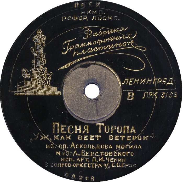 497 B (2393) | | | Павел Иванович Чекин, акк. оркестр, дирижёр Семен Осипович Брог | 1940 Ленинград | Ленмузтрест (гравированная) | 497 ЛРК 3168 | |