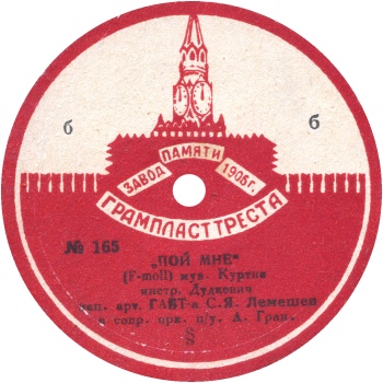 45 Надежда Андреевна Обухова , акк. ансамбль 1934 Москва Грампласттрест НКТП (ромбик, завод не указан)