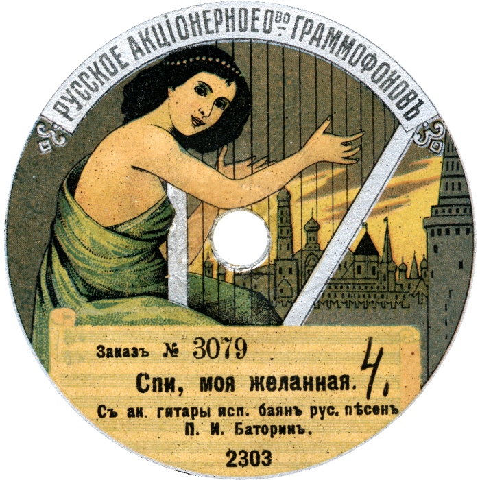 | 6218 | | | Russian folk choir under conduction of P. Batorin, Conductor Petr Batorin, Solo by Sergey Sibiryak(Bakhmutov) | | RAOG (silver harp) | 8019а | |