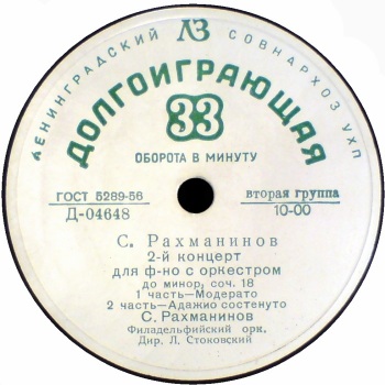 The first Soviet serial LP record D-01 Suite No.1. Pyotr Tchaikovsky performed by the Symphony Orchestra of the All-Union Radio Committee under conductor Alexander Gauck was released on November 2, 1951 at the April Factory of Gramophones. The recording was made by sound engineer Barskov and sound engineer A.I. Arshinov. From that moment a new separate numbering for monophonic LP records came to exist, which lasted until 1991 and ended with the number M10-49728 (which is known at the moment). Where D stood for long-playing (Dolgoigrayushchaya), and in front of the number of the matrix on the mirror there was written the capital letter "D." Soviet scientists have developed for LP records a special material called vinylite (co-polymer of vinyl chloride and vinyl acetate), its color could change depending on the dyes introduced. The LP’s made of vinylite were not as fragile as shellac discs, but they could no longer be played with steel needles, as the material was soft and could not withstand such a pressure. LP records had to be played with a corundum needle and using a light electric tonearm. Then the industry faced another problem. Factories producing gramophones could not in a short period of time switch to the production of 33 1⁄3 rpm players and necessary electric pickups. This process has taken much longer. And the producers of records had to press LP records with 78 rpm speed for some time. In 1952-1953 LP records with 33 1⁄3 and 78 rpm were pressed t alternately. The last 78 rpm LP record was D-2116, after that number, LP records were pressed only with 33 1⁄3 rpm. Reissues of LP records with 78 rpm were made until 1957 at Aprelevka and Leningrad production plants.