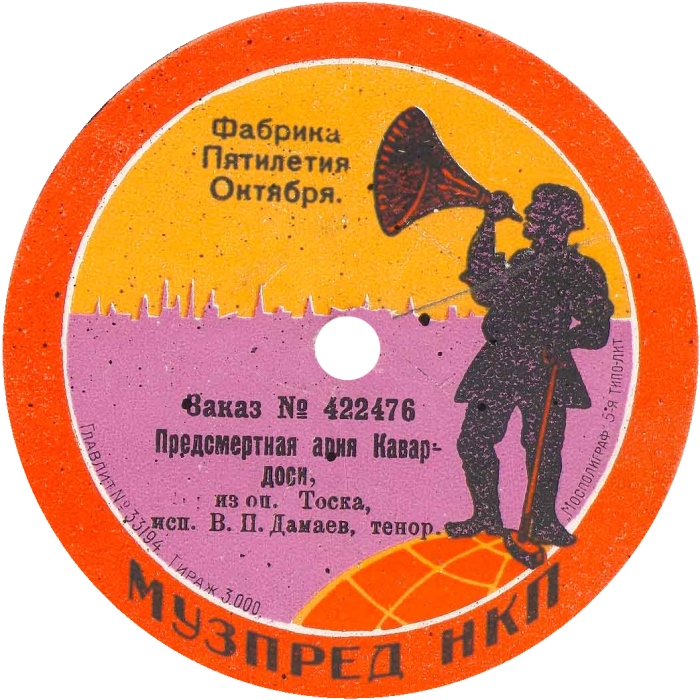 422476 (4033ae) | | | Vasily Damaev, acc. orchestra | 21-11-1912 Moscow | Muzpred NKP (reissues, "Fabrika Pyatiletiya Oktyabrya" inside), Gramophone Co. | 422476 4-22476 (4033ae) | |
