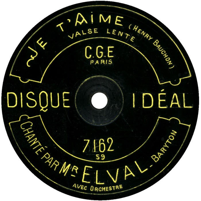 12" discs of Paris Compagnie Générale d'Electricité recorded using hill-and-dale (aka Edison) method. The nominal speed is 90 RPM, playing starts from the center of the disc.