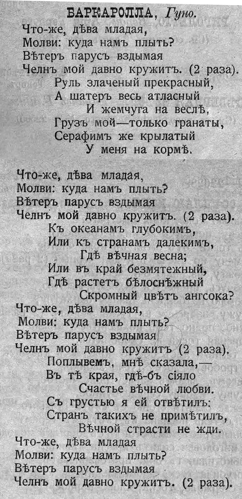 Молви дева младая, Баркаролла |