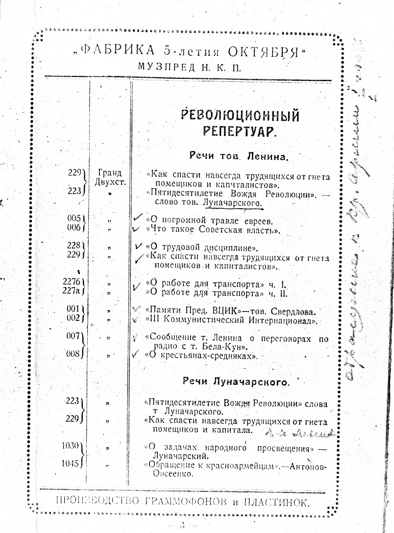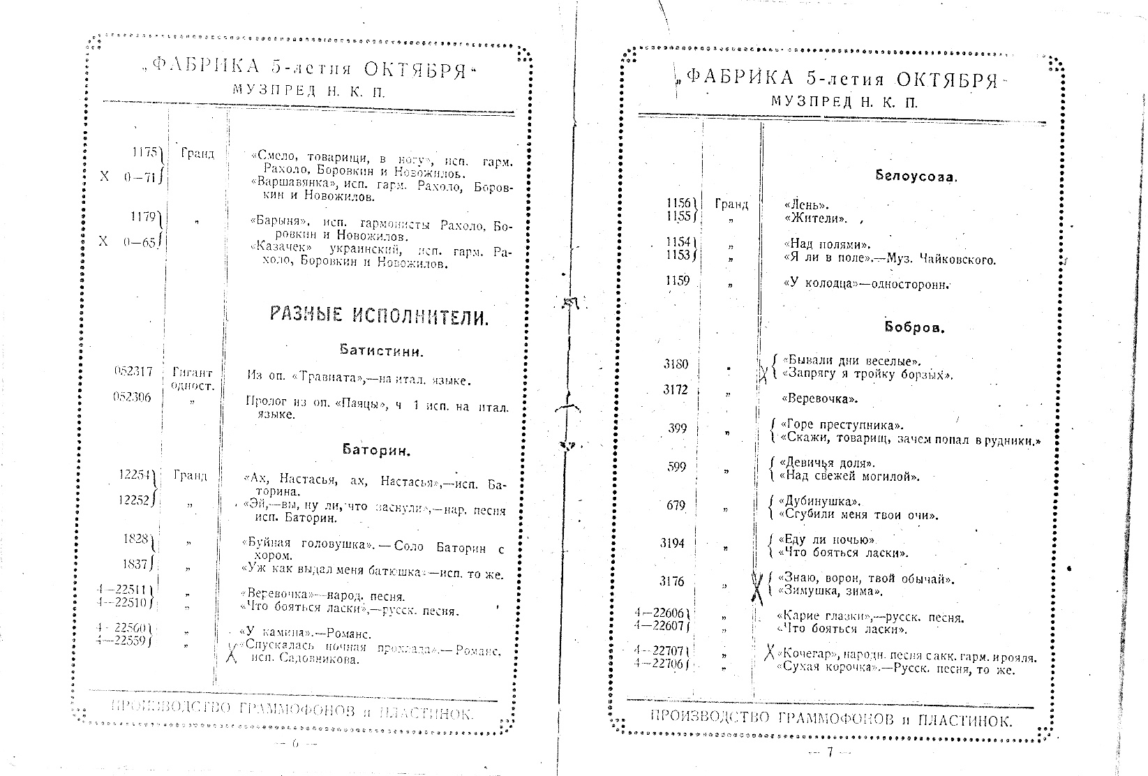 Я уже отсканированы и загружены пять страниц из каталога 1924 года. Может быть, я никогда не публиковал ссылку. У меня есть полный каталог, но нет времени, чтобы сканировать. Конечно, большинство из них состоит из дореволюционных записях - все оперы, конечно.