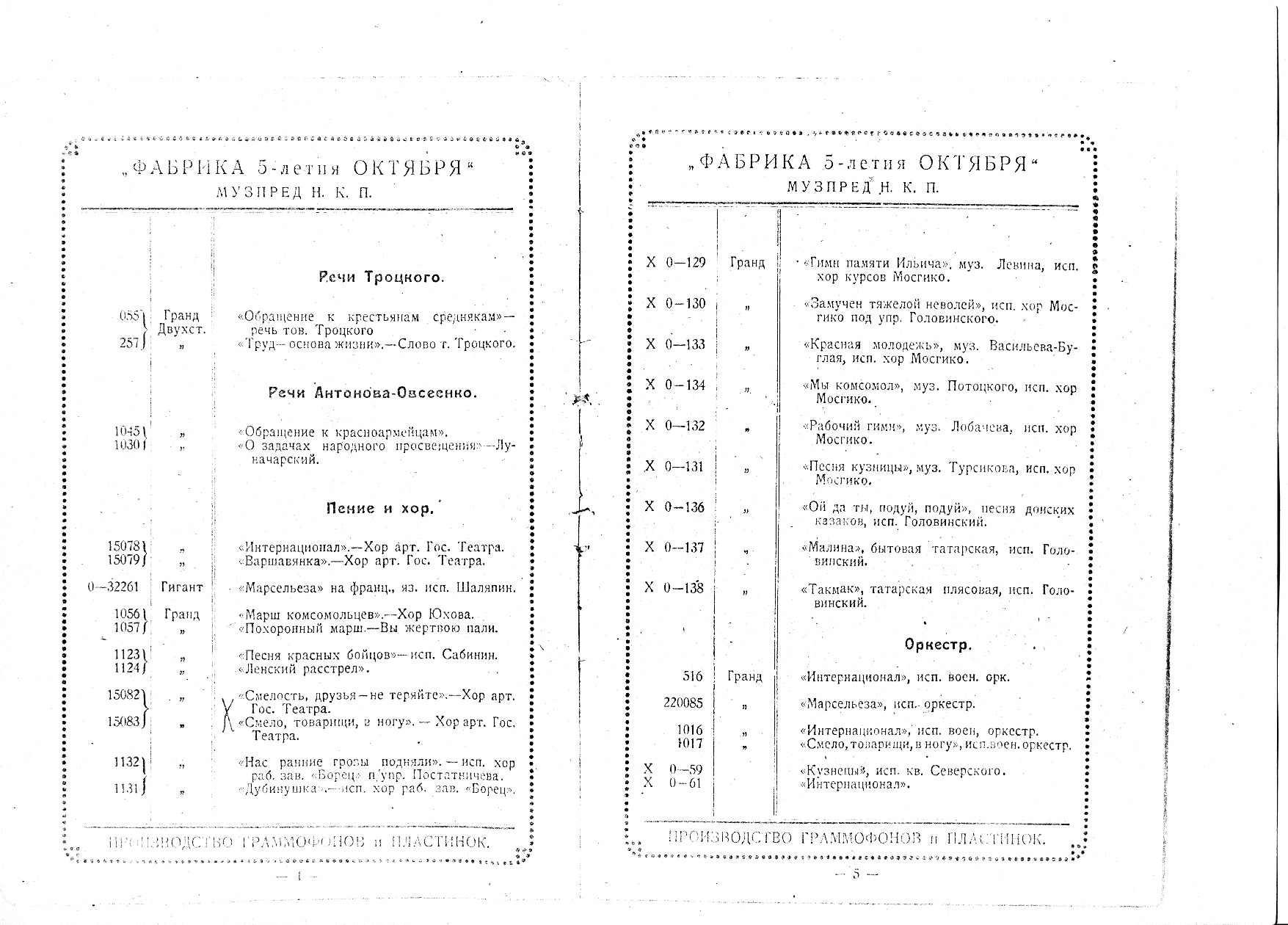 У А. Железного и в других изданиях упоминается "Каталог граммофонных пластинок за 1923-24 года фабрики пятилетия октября", его кто нибудь еще изучал? Он есть в общественном доступе? Если нет, то кто-нибудь знает где он находится? Можно снять копию и выложить на сайт.