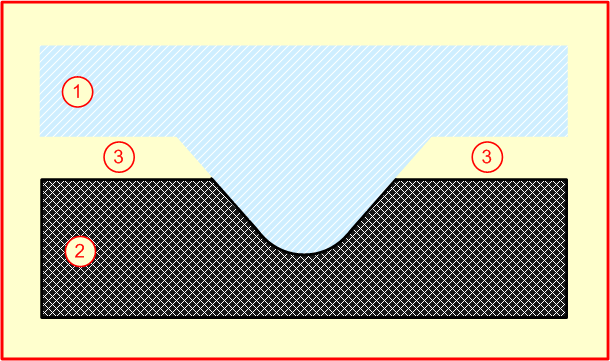 Если метал матрицы-штампа достаточно мягкий, то существенную роль может играть дефромация металла – в процессе печати он сминается и “расползается по сторонам”. В результате, канавка получается более широкой и мелкой, как это изображено на рис. 14:
