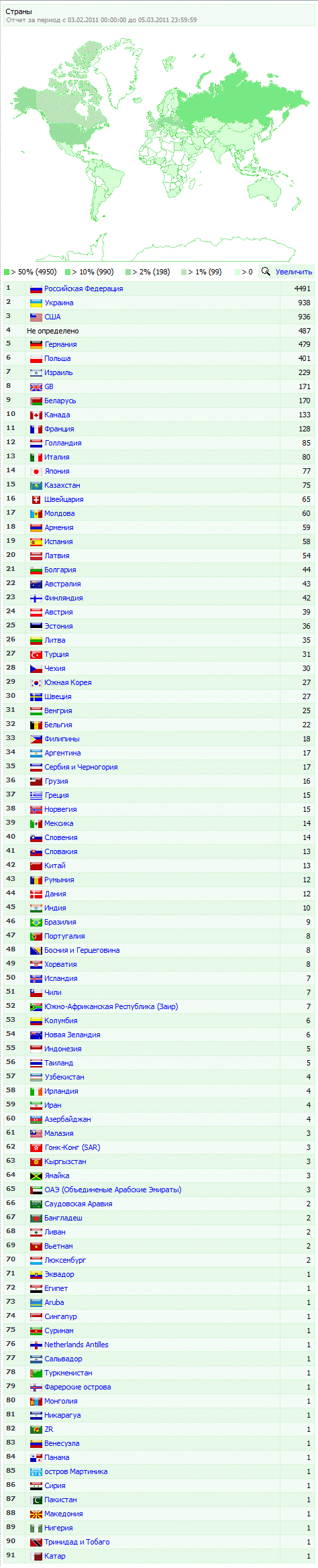 А это статистика посещений сайта за последние 30 дней по странам: