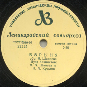 Gramplasttrest and major ... > Leningrad Plant 22225 22225 А Reissue (original matrix) Duplicates fund