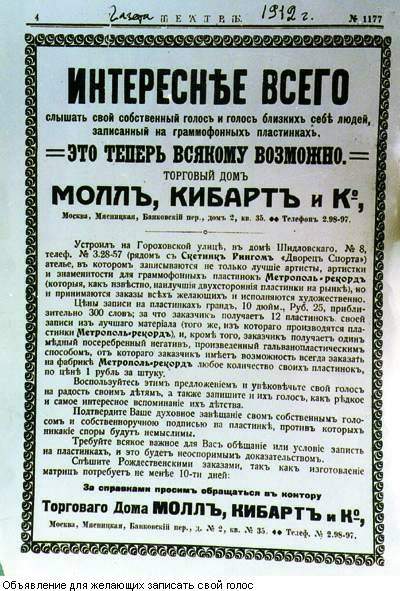 пластинка! Случилось это 15 декабря 1910 года. Фабрика представляла