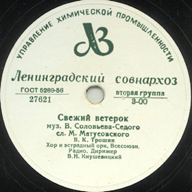 Accompaniment Type: Variety Orchestra | Accompanist: Variety orchestra of All-union radio committee