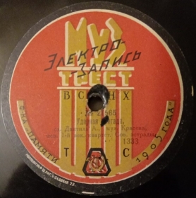 Спасибо! С исторической точки, конечно да - пластинка ценная. Но с такими "сочинениями", утесовское "Пока" оставляло позади всех конкурентов (если таковыми можно считать эти произведения и манеру исполнения) . Молодость моей бабушки пришлась на конец 20-х, 30-е годы. Она участница строительства Днепрогэса. Так вот, по ее воспоминаеиям, у молодежи тех лет были любимыми песни и пластинки "Кирпичики", "Пока", "У самовара", "Гоп со смыком", "Лимончики", "Черные глаза". А вот такие марши с "угловатой" мелодией и вымученными словами в почете не были.