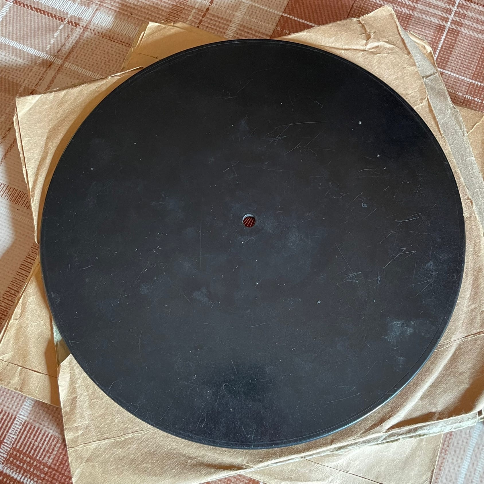 P.S. Кстати, обрезана этикетка ровно, просто я думаю, что использовалась бумажная лента немного меньшей ширины, чем диаметр этикетки, что создаёт видимость криво обрезаной этикетки. У ранних советских пластинок этиктки действительно обрезаны криво, здесь явно не тот случай.
