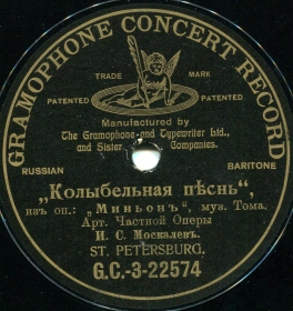 3-22697 (6356L) | | | Александр Михайлович Давыдов (Левенсон), акк. Б.С.Трояновский (балалайка) | 1907 С.-Петербург | Концерт (ангел) | С 3-22697 | |
