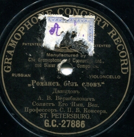 3-22696 (6355L) | | | Александр Михайлович Давыдов (Левенсон), акк. Борис Сергеевич Трояновский (балалайка) | 1907 С.-Петербург | Концерт (купидон) | | |