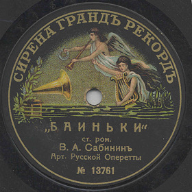 | 13760 | | | Vladimir A.Sabinin, acc. piano | 05-1913...12-1913 | Сирена Грандъ Рекордъ (type 1) | | |
