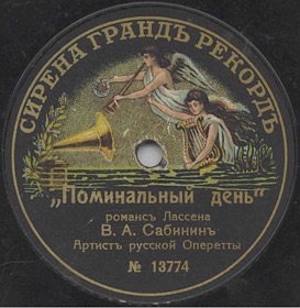 | 13774 | | | Vladimir A.Sabinin, acc. piano | 05-1913...12-1913 | Сирена Грандъ Рекордъ (type 1) | | |