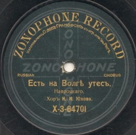 X-3-64701 (16187b) | | | Chorus of I.I.Yukhov, acc. piano, Conductor Ivan Yukhov | 11-1911 Moscow | Zonophone (Gramophone, semicircular inscription) | X 3-64700 | |