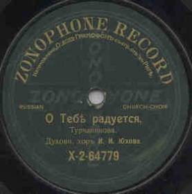 X-2-64814 (16189b) | | | Church-Choir, Conductor Ivan Yukhov | 11-1911 Moscow | Zonophone (Gramophone, semicircular inscription) | | |
