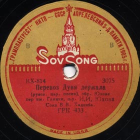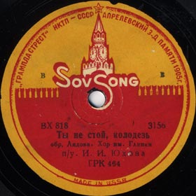 | 3075 | | | Mikahil Glinka choir, Conductor Ivan Yukhov, Solo by V.Khodneva | 1935 Moscow | SovSong | ВХ 814 ГРК 433 | |